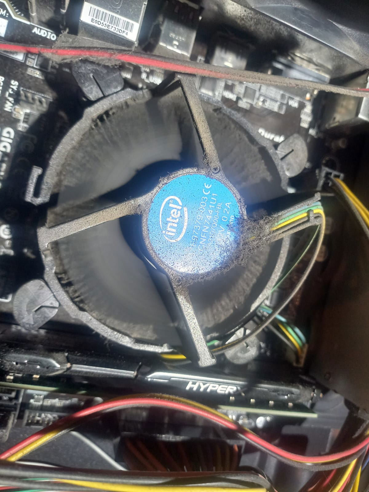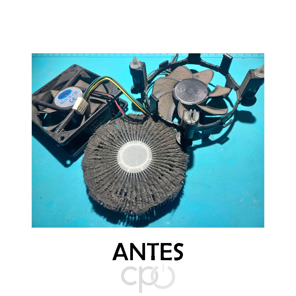 Sistema de refrigeración: El cooler del disipador se encontraba completamente obstruido por tierra/polvo, lo que reduce significativamente la capacidad de enfriamiento y puede provocar sobrecalentamiento del procesador.